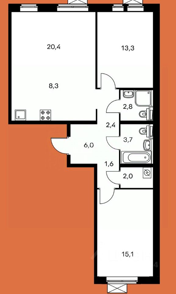 Просторные комнаты 15.1 м², 13.3 м² что позволит создать уютную зону для отдыха и сна.