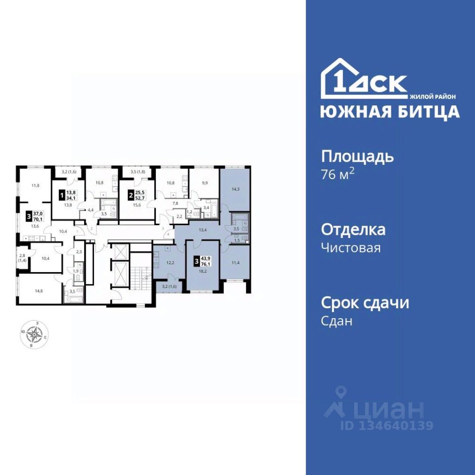 Продаётся 3-к квартира номер 128 общей площадью 76.1 кв.м. на 13-м этаже 22 этажного здания. Чистовая отделка. Цена с учётом скидки.