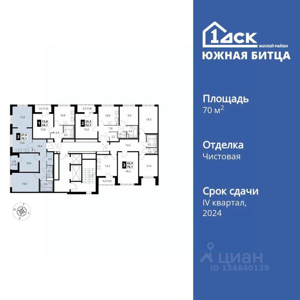 Продаётся 3-к квартира номер 129 общей площадью 70 кв.м. на 14-м этаже 22 этажного здания. Чистовая отделка. Цена с учётом скидки.