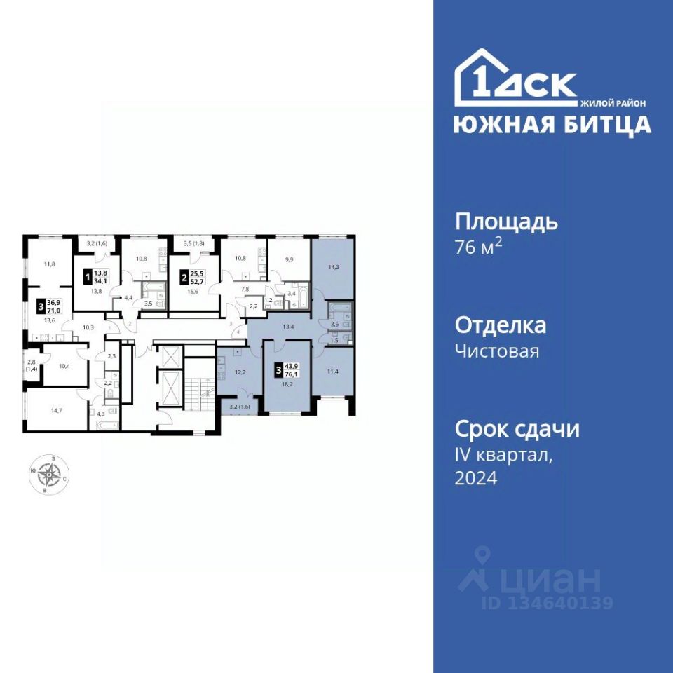 Продаётся 3-к квартира номер 152 общей площадью 76.1 кв.м. на 19-м этаже 22 этажного здания. Чистовая отделка. Цена с учётом скидки.