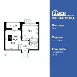 Продаётся 1-к квартира номер 138 общей площадью 34 кв.м. на 16-м этаже 22 этажного здания. Чистовая отделка. Цена с учётом скидки.
