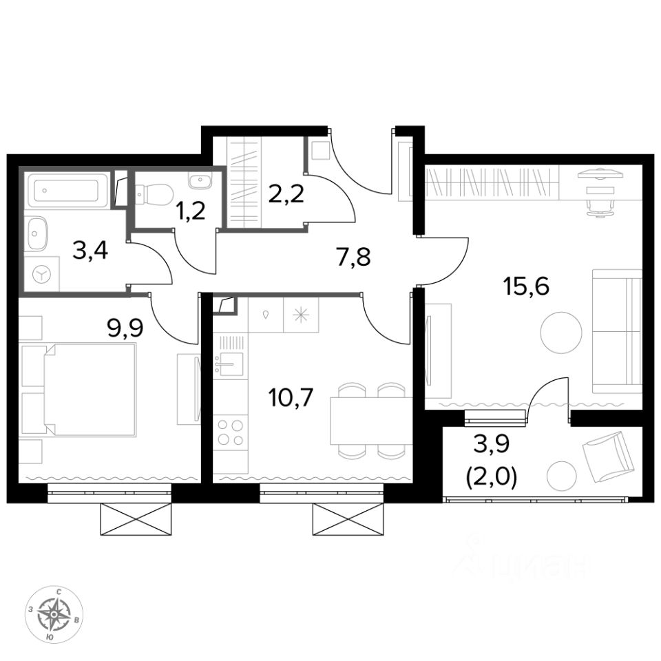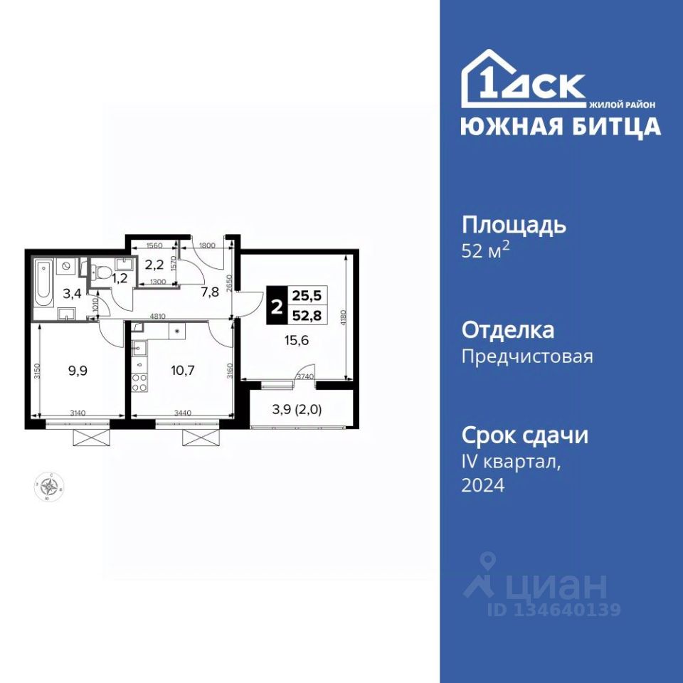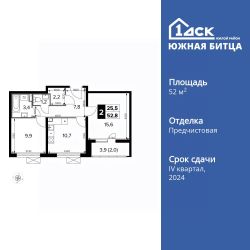 Продаётся 2-к квартира номер 243 общей площадью 52.9 кв.м. на 21-м этаже 22 этажного здания. Отделка Whitebox. Цена с учётом скидки.