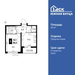 Продаётся 1-к квартира номер 563 общей площадью 38.2 кв.м. на 15-м этаже 23 этажного здания. Отделка Whitebox. Цена с учётом скидки.
