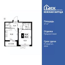 Продаётся 1-к квартира номер 510 общей площадью 37.7 кв.м. на 2-м этаже 23 этажного здания. Отделка Whitebox. Цена с учётом скидки.