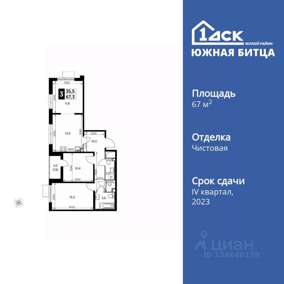 Продаётся 3-к квартира номер 119 общей площадью 67.4 кв.м. на 9-м этаже 20 этажного здания. Чистовая отделка. Цена с учётом скидки.