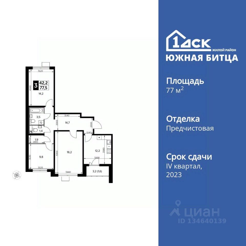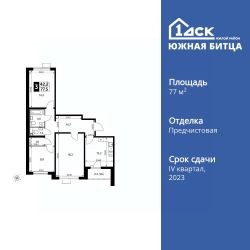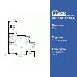 Продаётся 3-к квартира номер 262 общей площадью 77.7 кв.м. на 9-м этаже 20 этажного здания. Отделка Whitebox. Цена с учётом скидки.
