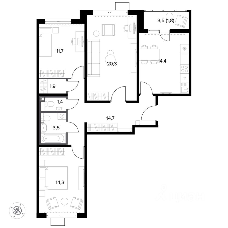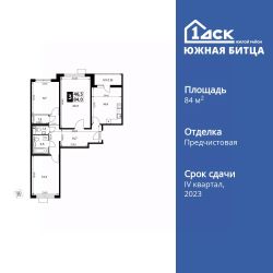Продаётся 3-к квартира номер 581 общей площадью 84.1 кв.м. на 14-м этаже 23 этажного здания. Отделка Whitebox. Цена с учётом скидки.