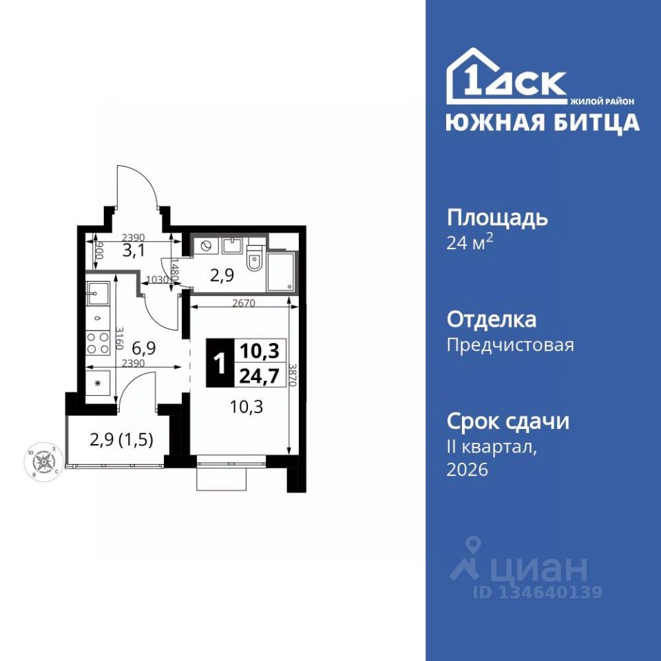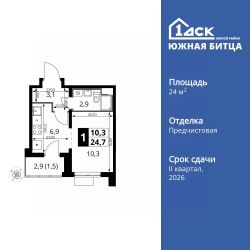 Продаётся 1-к квартира номер 222 общей площадью 24.7 кв.м. на 16-м этаже 22 этажного здания. Отделка Whitebox.
