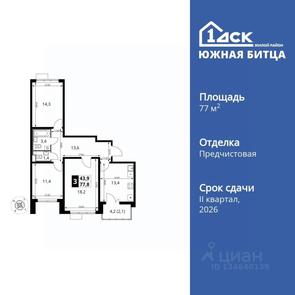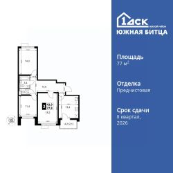 Продаётся 3-к квартира номер 248 общей площадью 77.8 кв.м. на 21-м этаже 22 этажного здания. Отделка Whitebox.