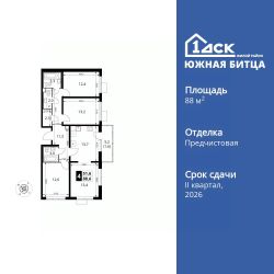 Продаётся 4-к квартира номер 542 общей площадью 89 кв.м. на 6-м этаже 22 этажного здания. Отделка Whitebox.