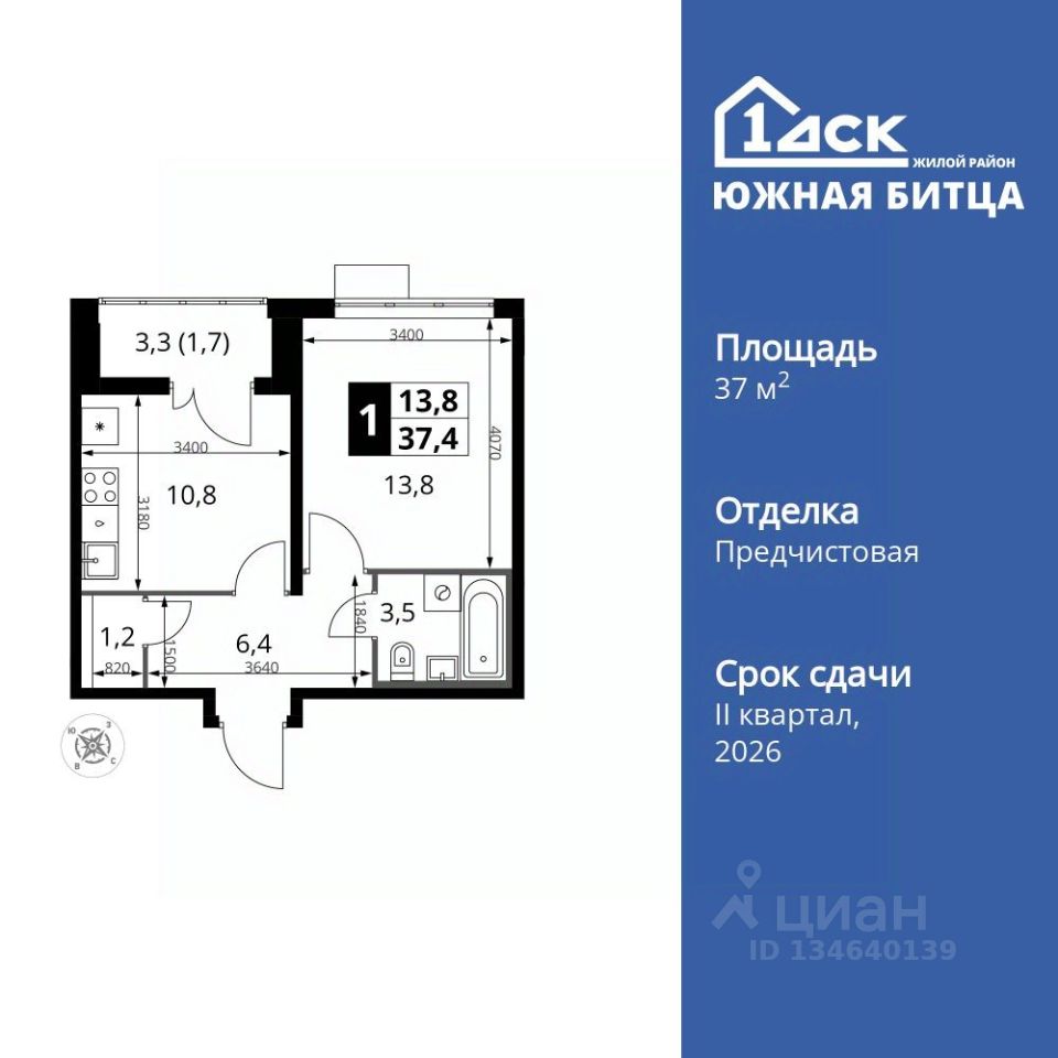 Продаётся 1-к квартира номер 635 общей площадью 37.4 кв.м. на 3-м этаже 22 этажного здания. Отделка Whitebox.