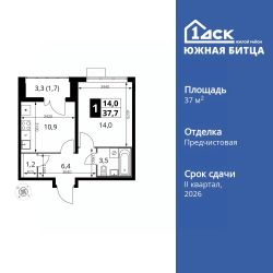 Продаётся 1-к квартира номер 715 общей площадью 37.7 кв.м. на 13-м этаже 22 этажного здания. Отделка Whitebox.