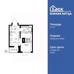 Продаётся 1-к квартира номер 790 общей площадью 27.7 кв.м. на 22-м этаже 22 этажного здания. Отделка Whitebox.