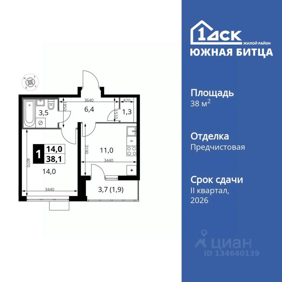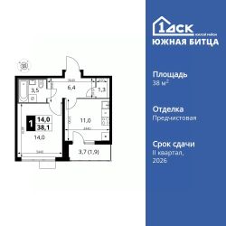 Продаётся 1-к квартира номер 703 общей площадью 38.1 кв.м. на 11-м этаже 22 этажного здания. Отделка Whitebox.