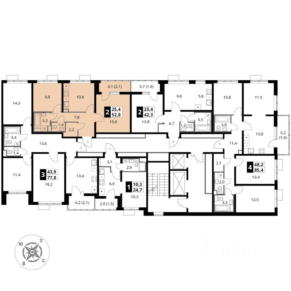 Продаётся 2-к квартира номер 219 общей площадью 52.8 кв.м. на 15-м этаже 22 этажного здания. Отделка Whitebox.