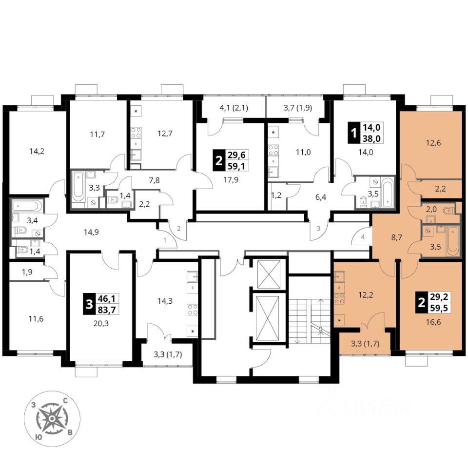 Продаётся 2-к квартира номер 328 общей площадью 59.5 кв.м. на 18-м этаже 22 этажного здания. Отделка Whitebox.