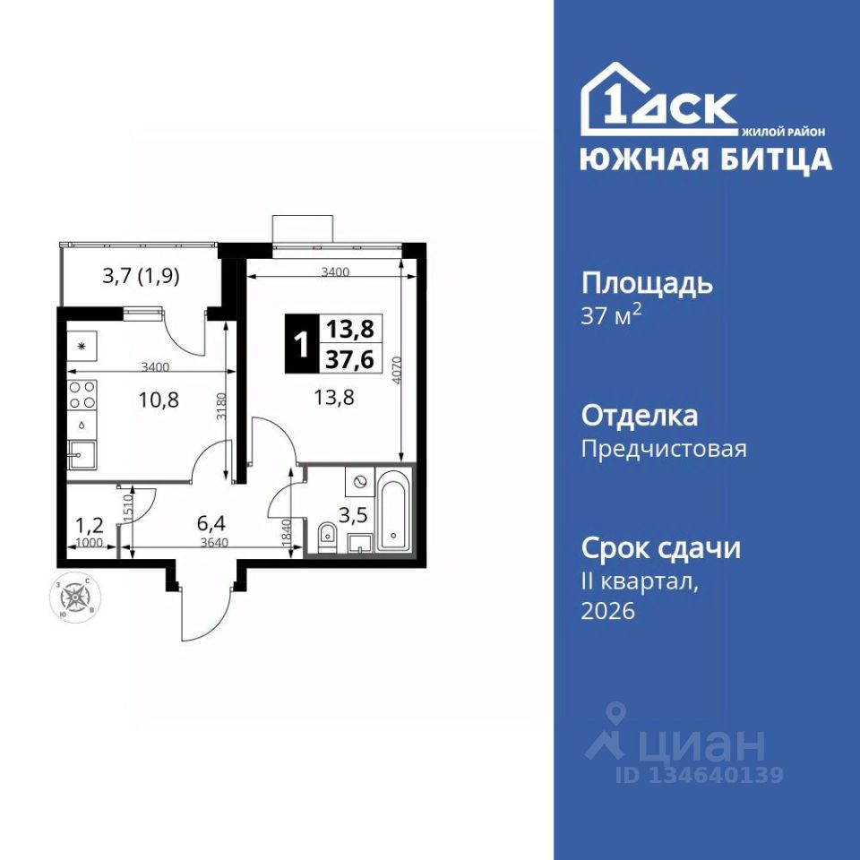 Продаётся 1-к квартира номер 459 общей площадью 37.6 кв.м. на 7-м этаже 22 этажного здания. Отделка Whitebox.