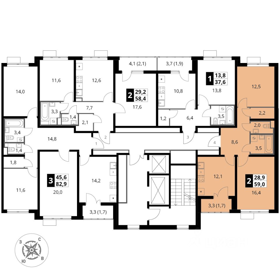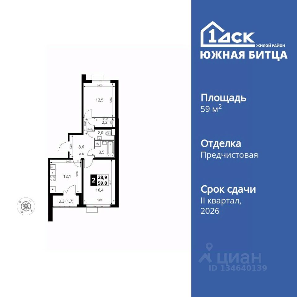 Продаётся 2-к квартира номер 460 общей площадью 59 кв.м. на 7-м этаже 22 этажного здания. Отделка Whitebox.