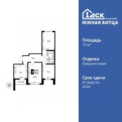 Прямая продажа от застройщика! Семейный жилой район класса Комфорт Плюс Продаётся 3-к квартира номер 112 общей площадью 75.3 кв.м. на 6-м этаже 24 этажного здания. Отделка Whitebox. Цена с учётом скидки. Особенности квартиры: - Гостевой санузел - комфорт и удобство для ваших гостей. - Просторная кухня - место для семейных ужинов и кулинарных экспериментов. - Ниша под шкаф - компактное и удобное место для вещей. - Лоджия - уютное место для отдыха и тишины. - Панорамное остекление лоджии - открывает вид на окружающий мир. Квартира с предчистовой отделкой (White box). Вам не придется заниматься черновыми и трудоёмкими работы, а чистовую отделку и дизайн - сделайте на свой вкус. Информация о комплексе: Сочетание свободного перемещения по внутреннней территории без машин и ощущения абсолютной безопасности благодаря надежным ограждениям - вот что отличает ЖК Южная Битца. На территории комплекса созданы все условия как для активного образа жизни, так и для спокойного времяпрепровождения. Свободно перемещайтесь по внутренней территории в безбарьерной среде! Продуманное зонирование во дворах позволяет отделить тихие зоны для родителей со спящими младенцами и тех, кто хочет почитать на свежем воздухе, от шумных игровых зон. Игровые зоны учитывают возраст детей. Площадки для детей старшего возраста вынесены за пределы дворов. Ощущение уютного дома должно начинаться с подъезда. Мы постарались предусмотреть все нюансы, чтобы наши лифты отвечали самым строгим современным требованиям. А наличие кладовых позволит вам поддерживать идеальный порядок и уют в вашей квартире! Транспортная доступность: В 3 км от МКАД в нескольких минутах езды до трех станций метро: Аннино, Бульвар Дмитрия Донского, улица Старокочаловская и станции МЦД2 - жд Бутово. Внутренняя инфраструктура: Для жителей жилого района "Южная Битца" доступна развитая инфраструктура близлежащих московских районов Чертаново, Южное, Бирюлёво Западное, Северное Бутово и Южное Бутово. Множество образовательных учреждений, объекты здравоохранения, торговые и развлекательные центры, кинотеатры, кафе, рестораны, парки.
