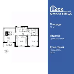 Продаётся 2-к квартира номер 246 общей площадью 52.9 кв.м. на 17-м этаже 24 этажного здания. Отделка Whitebox. Цена с учётом скидки.