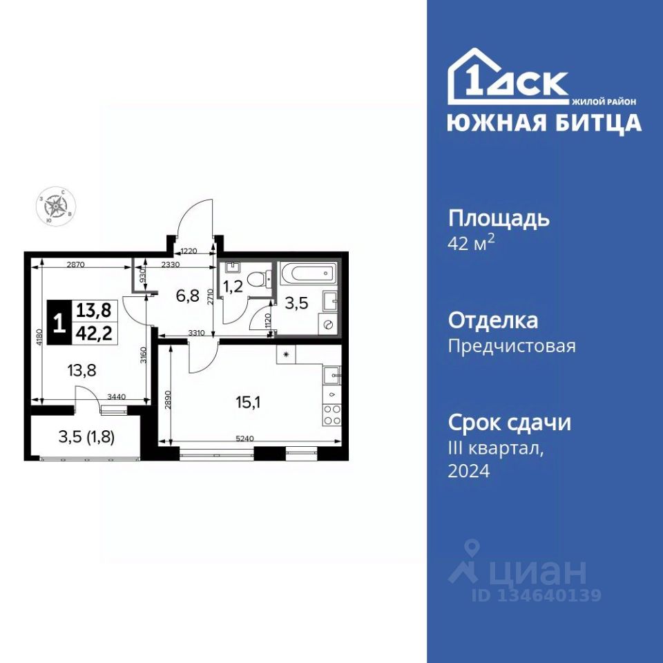 Продаётся 1-к квартира номер 442 общей площадью 42.4 кв.м. на 20-м этаже 24 этажного здания. Отделка Whitebox. Цена с учётом скидки.
