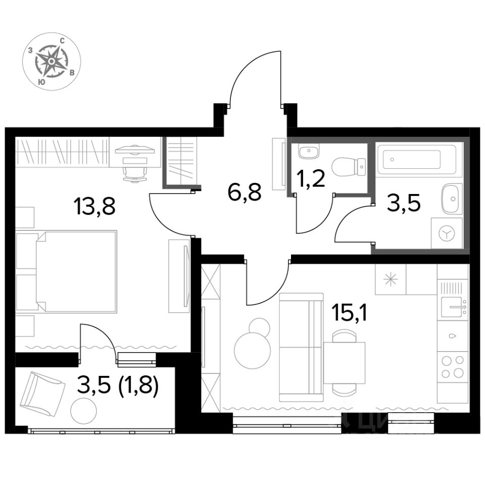 - Раздельный санузел - больше удобства для всех членов семьи.