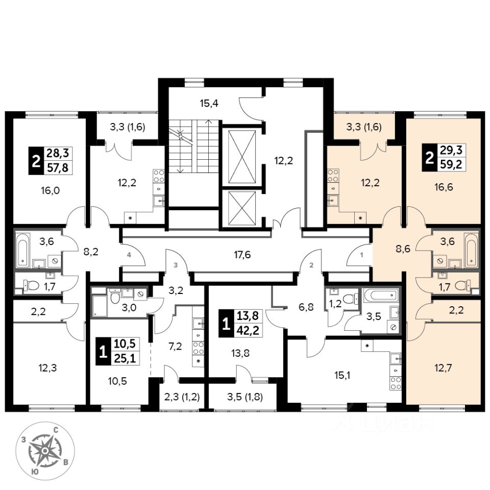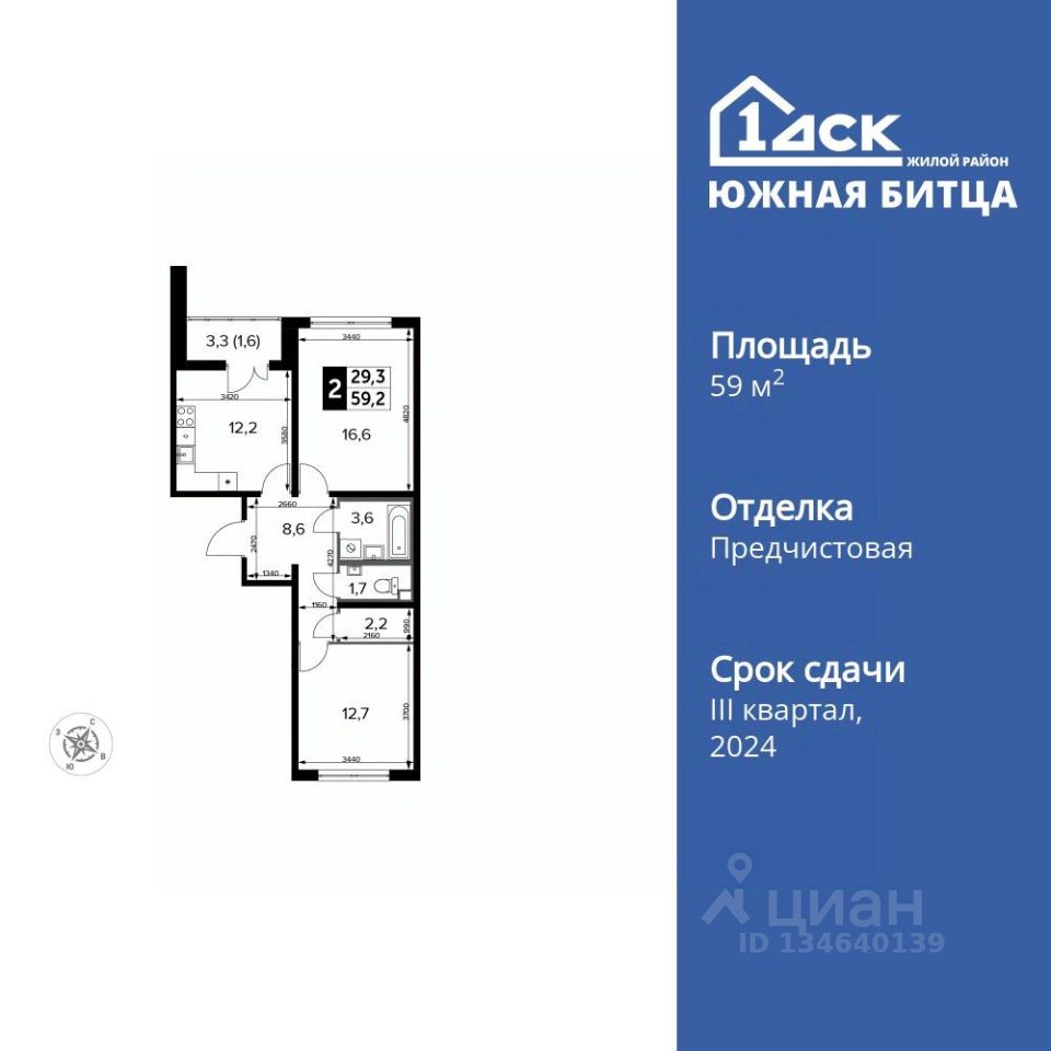 Продаётся 2-к квартира номер 457 общей площадью 59.5 кв.м. на 24-м этаже 24 этажного здания. Отделка Whitebox. Цена с учётом скидки.
