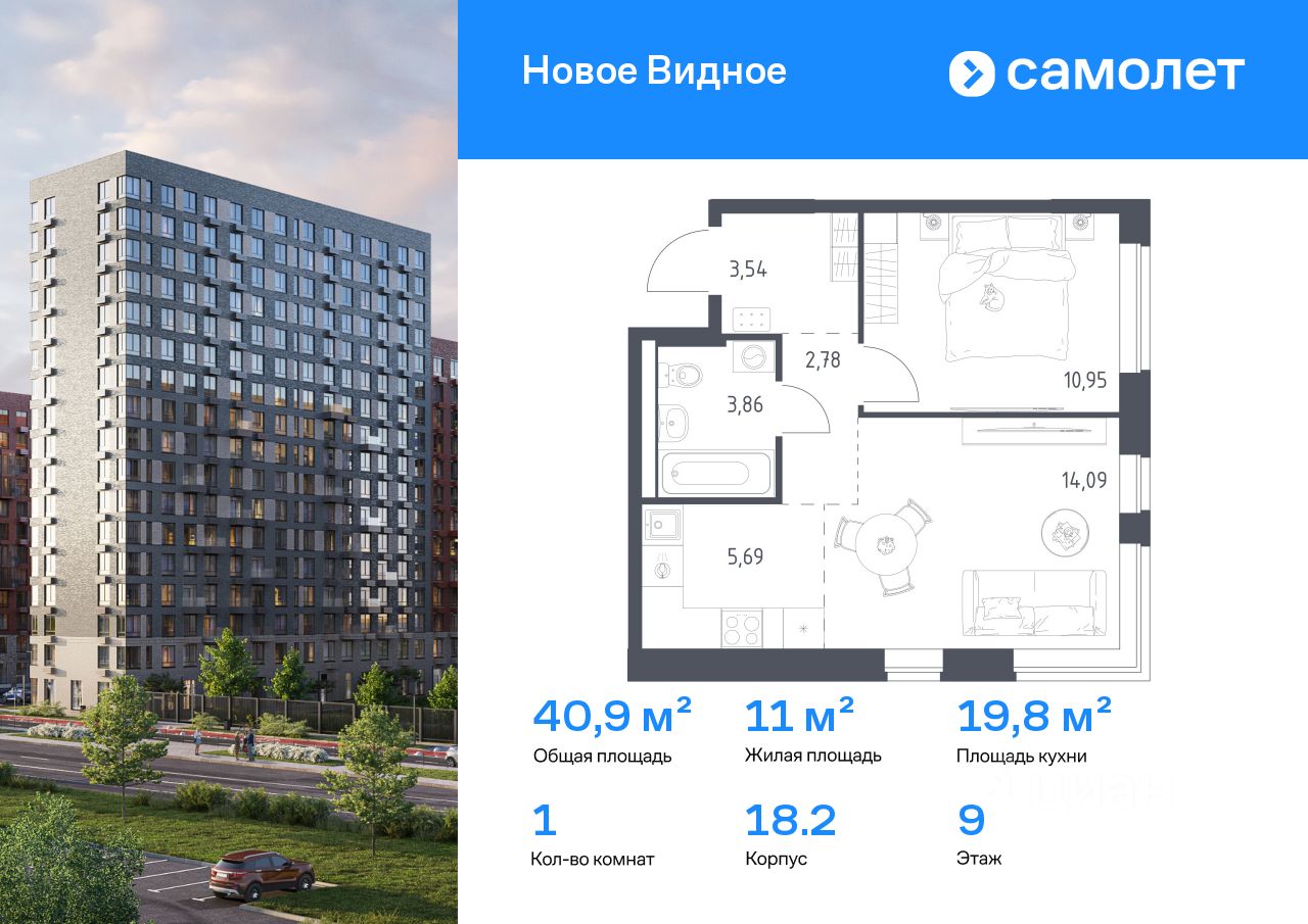 Строим кварталы для жизни с заботой о будущем. Предлагается 1-комнатная квартира комфорт-класса 40,91 кв.м в корпусе 18.2 на 9 этаже, в ЖК "Новое Видное"
