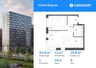 Строим кварталы для жизни с заботой о будущем. Предлагается 1-комнатная квартира комфорт-класса 40,91 кв.м в корпусе 18.2 на 9 этаже, в ЖК "Новое Видное" Квартира без отделки. Доступность опции "отделка" и возможность комплектации мебелью и декором уточняйте у застройщика. Приобрести квартиру возможно по специальным акциям от застройщика, с текущими условиями акций можно ознакомиться в блоке "Акций". Цена динамическая и может отличаться, уточняйте актуальность у застройщика. Жилой комплекс "Новое Видное" — масштабный проект из 30 урбан-блоков, который находится рядом с Видновским лесопарком и в 8 км от МКАДа. В отделке фасадов — декоративный кирпич в белом, сером, бежевом и терракотовом оттенках. Такое сочетание оттенков словно нежная игра света на песчаной глади озера — тонкие линии и мягкие переливы создают волшебный узор, отражающий красоту природы. Жить здесь легко и комфортно: рядом с домом будет все важное и необходимое — от магазинов и кафе до плейхабов и набережной. В "Новом Видном" вы сможете слушать джазовые мотивы города и наслаждаться освежающей близостью леса. "Новое Видное" — это: 1. До МКАДа — 8 км 2. 20 минут ходьбы или 5 минут на авто до ж/д станции Калинина 3. 25 минут на авто до аэропорта Домодедово 4. В будущем — прямой выезд на Каширское шоссе 5. Видновский парк и Пуговичинский пруд рядом с домом 6. Музей-заповедник "Горки Ленинские" в нескольких минутах на авто 7. 12 минут на авто до конных клубов "Задор", "Юланта" и "Казачий Дозор" 8. 4 школы, 7 детских садов, поликлиника, станция скорой помощи 9. Приватные дворы без машин 10. Покет-парки для спокойного отдыха 11. Спортивные и игровые площадки 12. Входы в корпуса без ступеней и высоких порогов 13. Помещения для колясок в лобби 14. Панорамное остекление балконов 15. Велодорожки по всей территории квартала