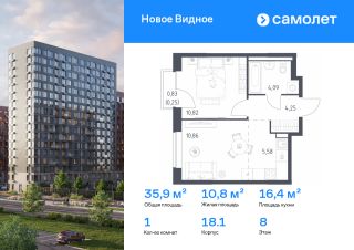 Строим кварталы для жизни с заботой о будущем. Предлагается 1-комнатная квартира комфорт-класса 35,85 кв.м в корпусе 18.1 на 8 этаже, в ЖК "Новое Видное"
