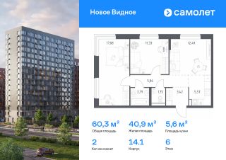 Строим кварталы для жизни с заботой о будущем. Предлагается 2-комнатная квартира комфорт-класса 60,29 кв.м в корпусе 14.1 на 6 этаже, в ЖК "Новое Видное"