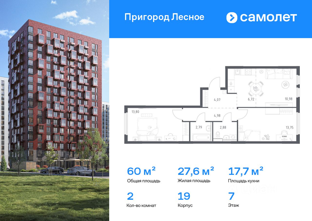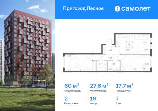 Строим кварталы для жизни с заботой о будущем. Предлагается 2-комнатная квартира комфорт-класса 59,97 кв.м в корпусе 19 на 7 этаже, в ЖК "Пригород Лесное"