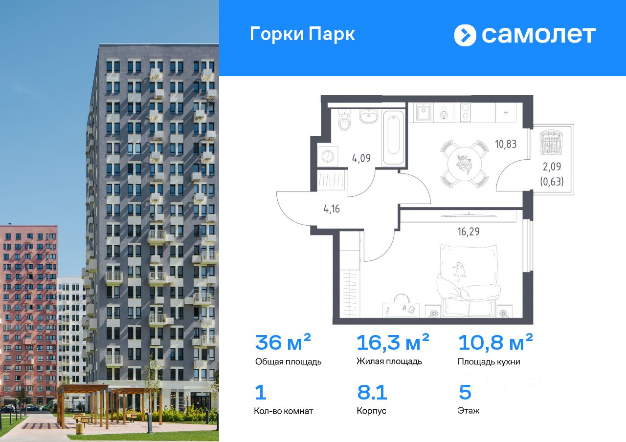 Строим кварталы для жизни с заботой о будущем. Предлагается 1-комнатная квартира комфорт-класса 36 кв.м в корпусе 8.1 на 5 этаже, в ЖК "Горки Парк"