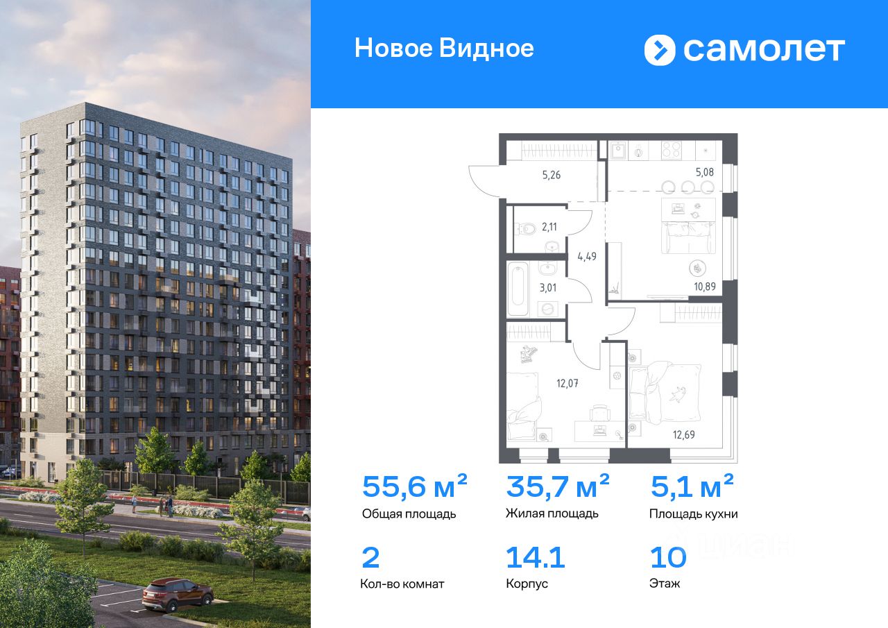 Строим кварталы для жизни с заботой о будущем. Предлагается 2-комнатная квартира комфорт-класса 55,6 кв.м в корпусе 14.1 на 10 этаже, в ЖК "Новое Видное"