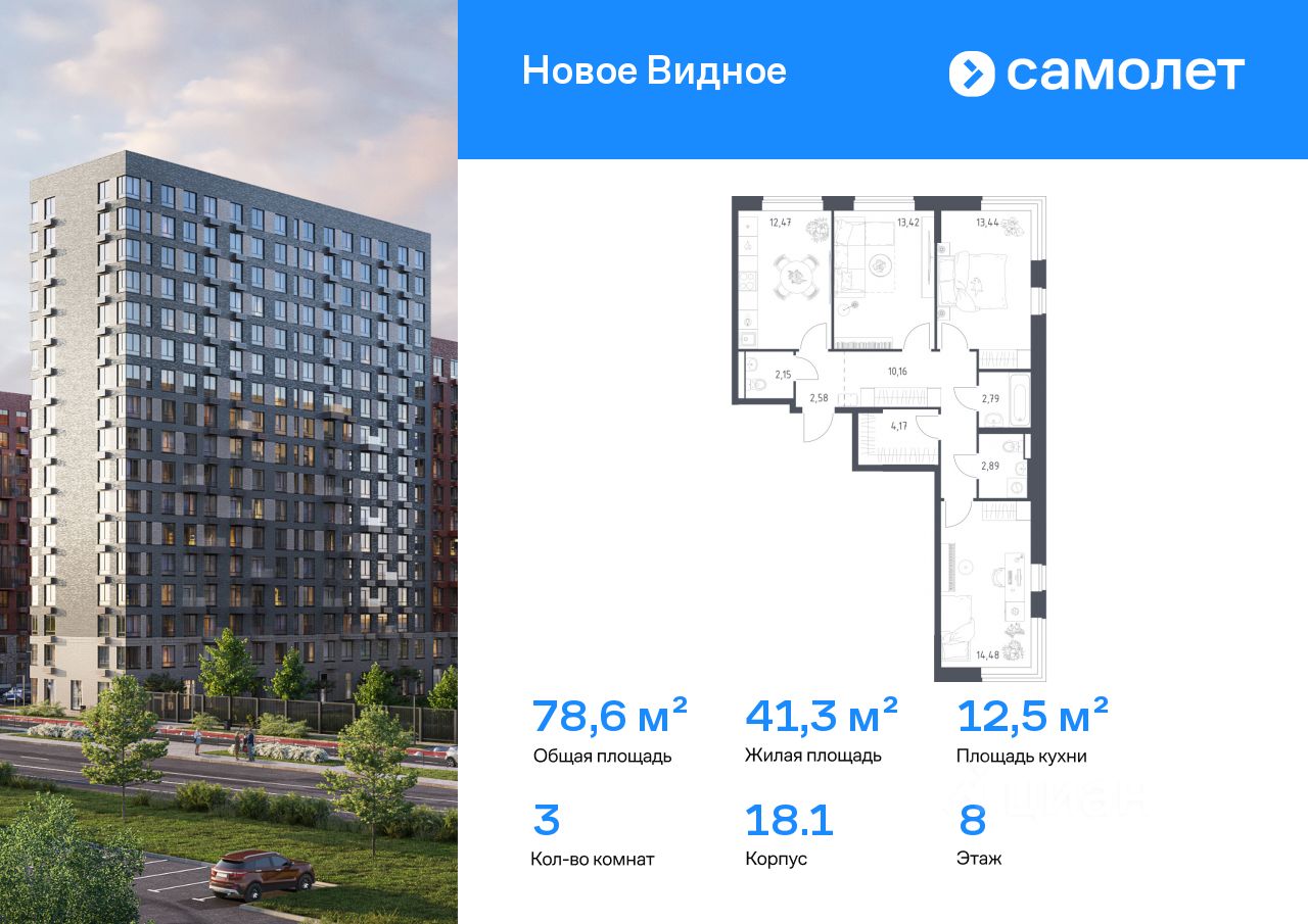 Строим кварталы для жизни с заботой о будущем. Предлагается 3-комнатная квартира комфорт-класса 78,55 кв.м в корпусе 18.1 на 8 этаже, в ЖК "Новое Видное"