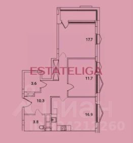 Планировка включает 2 изолированные комнаты, кухня-гостиная 17 кв.м и отдельную гардеробную.