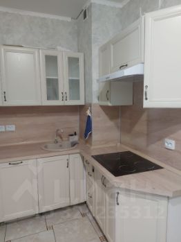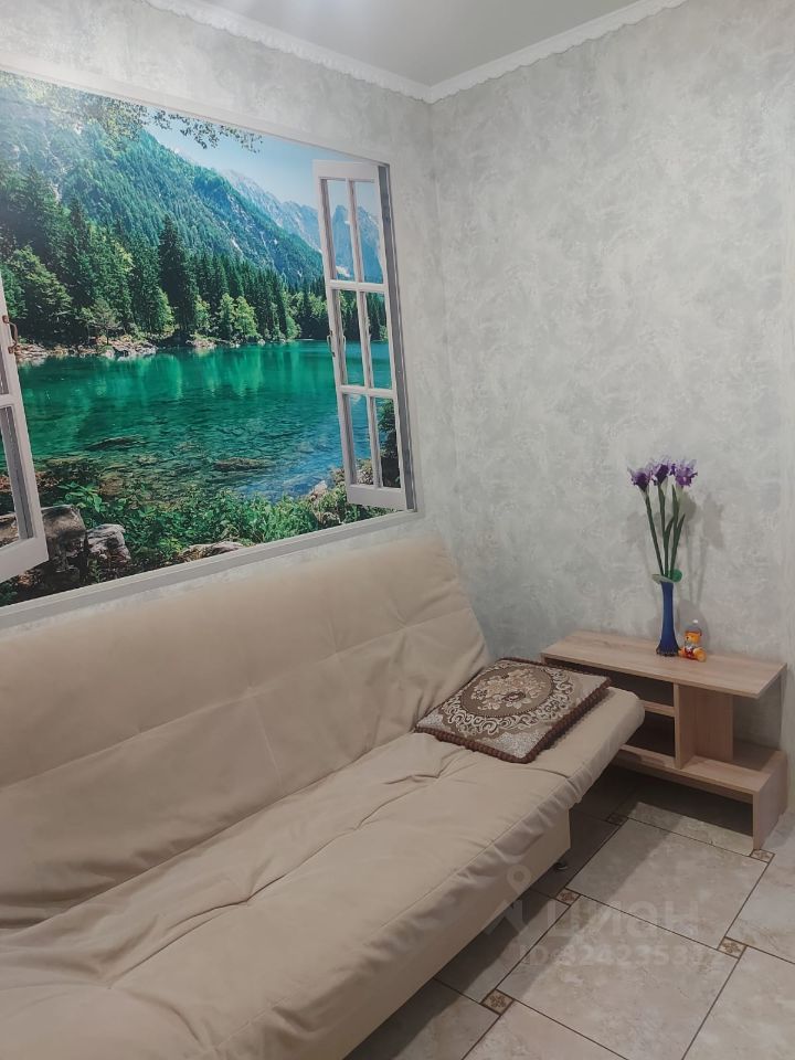 Проходная кухня со встроенной кухней, техникой и спальным местом (диван) и отдельная гостинная комната для отдыха с двумя окнами во двор.