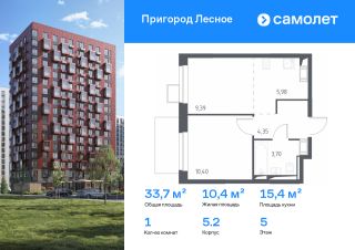 Строим кварталы для жизни с заботой о будущем. Предлагается 1-комнатная квартира комфорт-класса 33,7 кв.м в корпусе 5.2 на 5 этаже, в ЖК "Пригород Лесное"