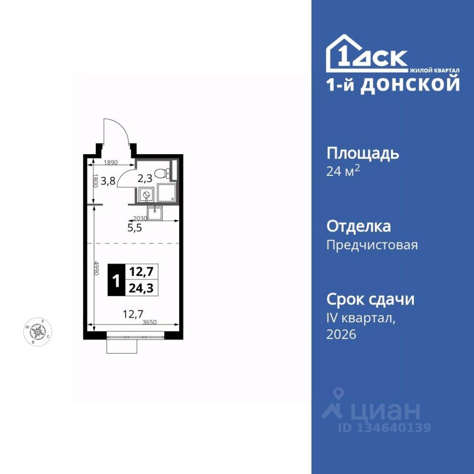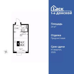 Продаётся квартира-студия номер 587 общей площадью 24.3 кв.м. на 11-м этаже 24 этажного здания. Отделка Whitebox.