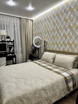 - новый диван (куплен в 2025 году) в гостиной, электрокамин, кровать с подъемным механизмом Askona в спальне,