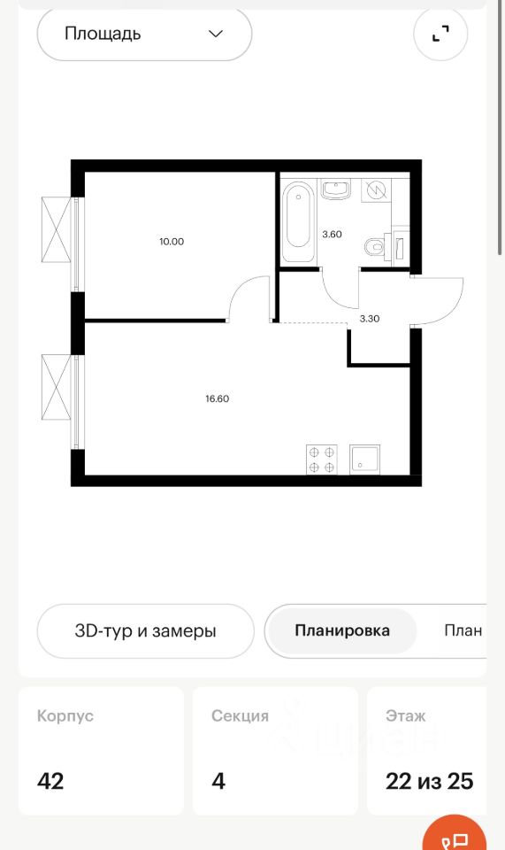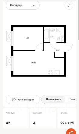 Продаю 1-комн.квартиру площадью 33,5 кв.м на 22 этаже 25-этажного дома (Корпус 42) проекта ПИК Восточное Бутово.