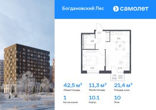 Строим кварталы для жизни с заботой о будущем. Предлагается 1-комнатная квартира комфорт-класса 42,5 кв.м в корпусе 10.1 на 10 этаже, в ЖК "Богдановский Лес"
