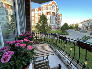 • Дополнительный балкон с видом на центральную аллею и таунхаусы.