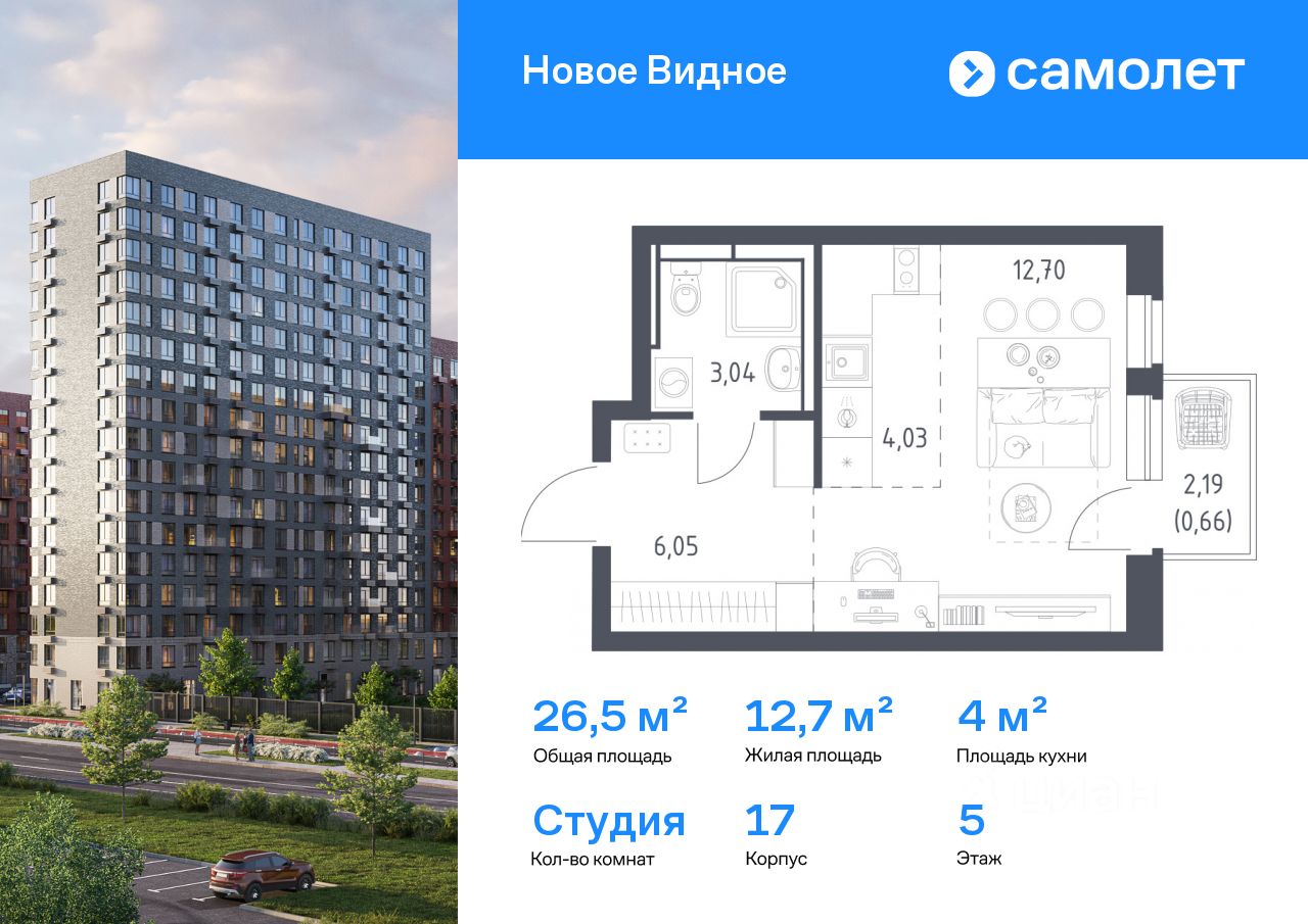 Строим кварталы для жизни с заботой о будущем. Предлагается квартира студия комфорт-класса 26,48 кв.м в корпусе 17 на 5 этаже, в ЖК "Новое Видное"