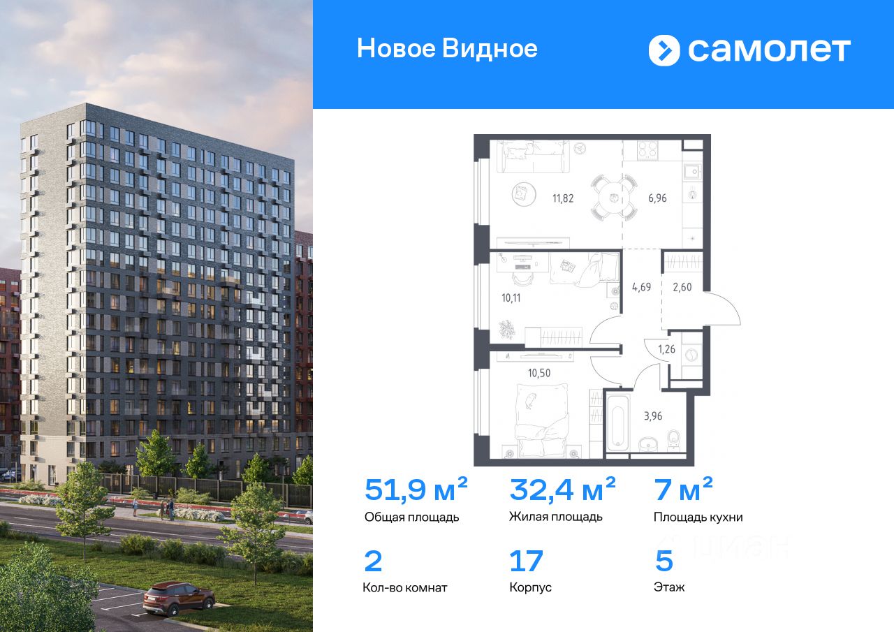Строим кварталы для жизни с заботой о будущем. Предлагается 2-комнатная квартира комфорт-класса 51,9 кв.м в корпусе 17 на 5 этаже, в ЖК "Новое Видное"
