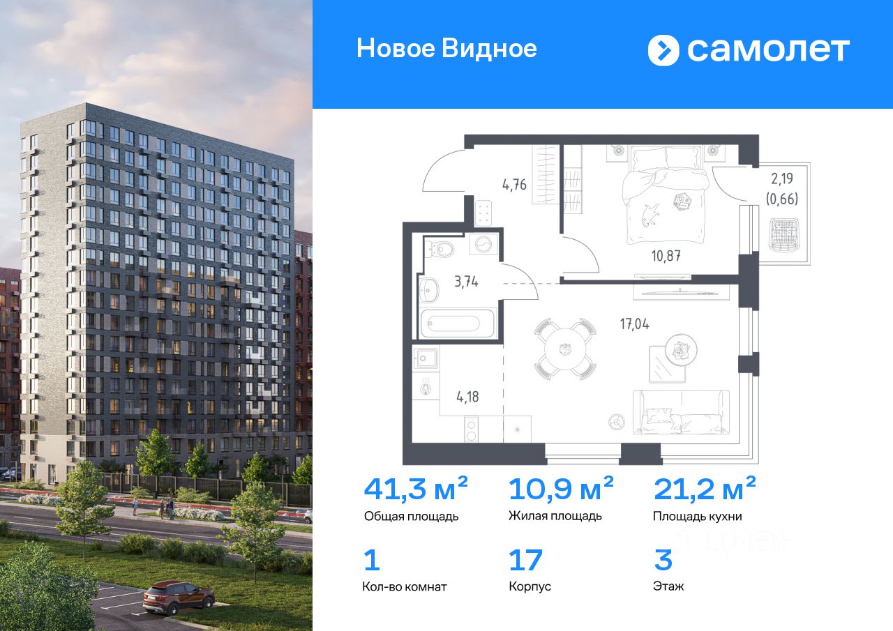 Строим кварталы для жизни с заботой о будущем. Предлагается 1-комнатная квартира комфорт-класса 41,25 кв.м в корпусе 17 на 3 этаже, в ЖК "Новое Видное"