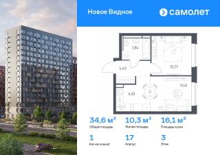 Строим кварталы для жизни с заботой о будущем. Предлагается 1-комнатная квартира комфорт-класса 34,57 кв.м в корпусе 17 на 3 этаже, в ЖК "Новое Видное"