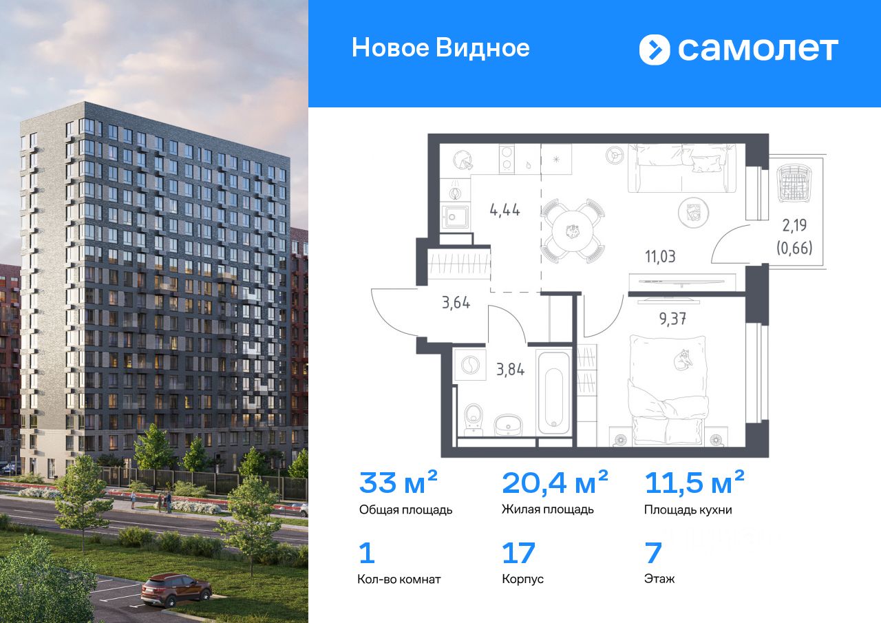 Строим кварталы для жизни с заботой о будущем. Предлагается 1-комнатная квартира комфорт-класса 32,98 кв.м в корпусе 17 на 7 этаже, в ЖК "Новое Видное"