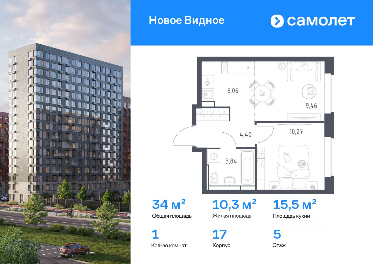Строим кварталы для жизни с заботой о будущем. Предлагается 1-комнатная квартира комфорт-класса 34,03 кв.м в корпусе 17 на 5 этаже, в ЖК "Новое Видное"