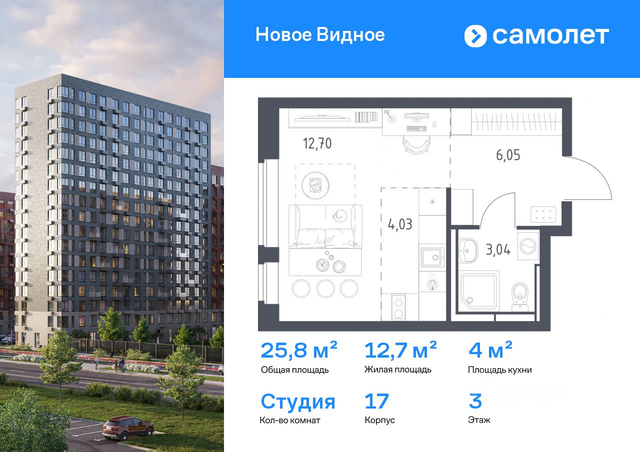 Строим кварталы для жизни с заботой о будущем. Предлагается квартира студия комфорт-класса 25,82 кв.м в корпусе 17 на 3 этаже, в ЖК "Новое Видное"